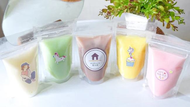 Pilihan rasanya pun sangat fleksibel dan bisa disesuaikan dengan selera pasar, seperti cokelat, stroberi, taro, mangga, dan banyak varian lainnya. Proses pembuatannya tergolong praktis, hanya perlu mencampur bahan berupa bubuk puding, gula, susu, serta air, kemudian dimasak sampai mendidih. Setelah itu, puding tinggal didinginkan di dalam kemasan standing pouch agar siap dijual.